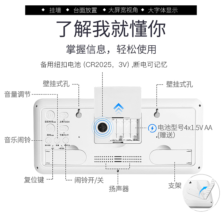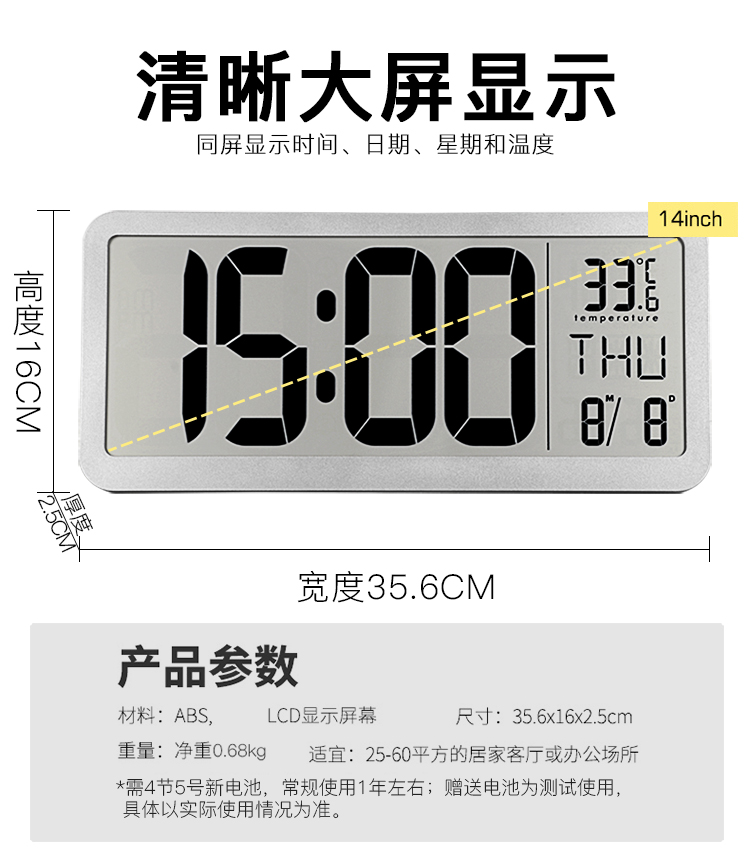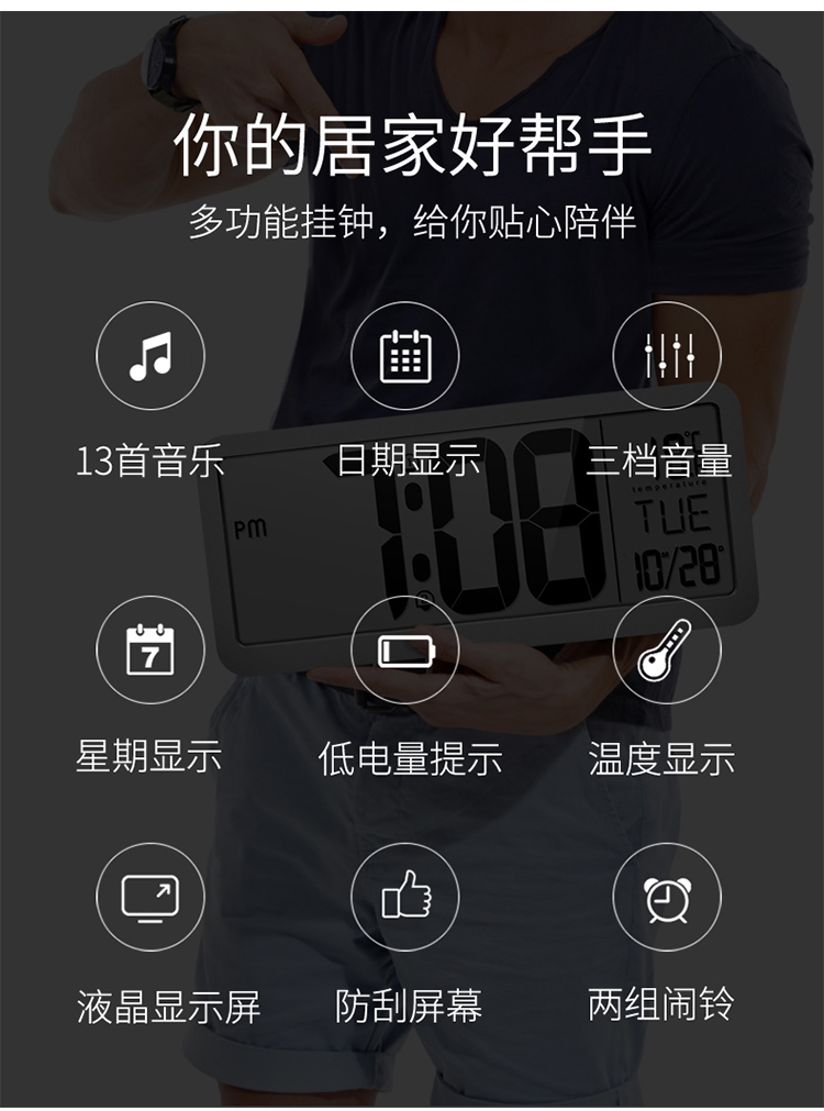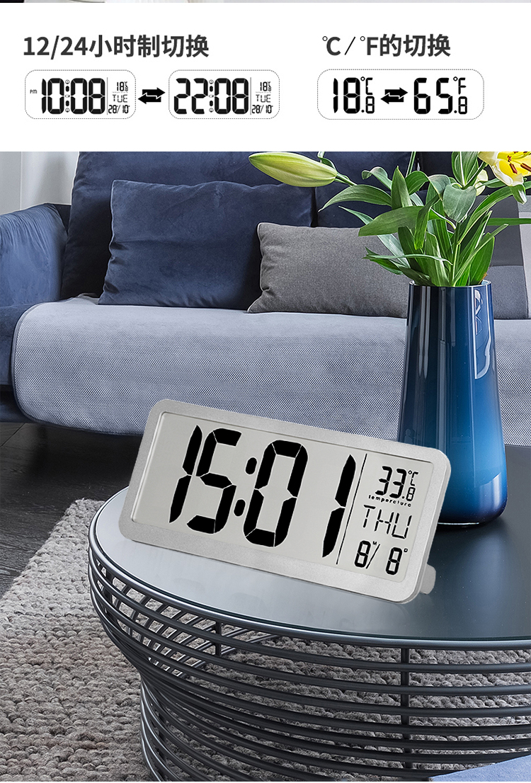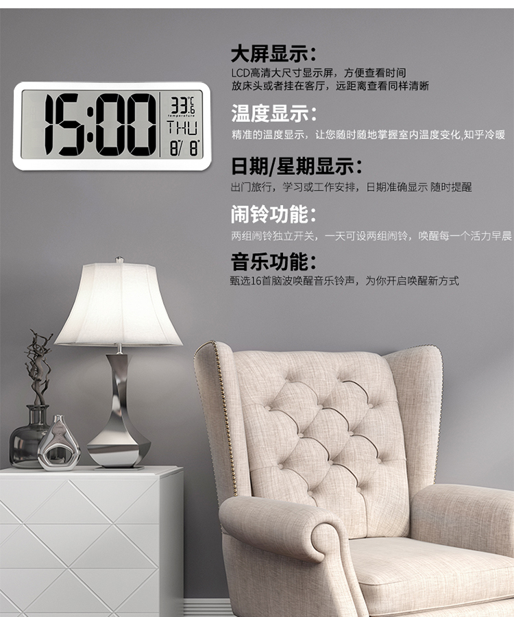 现代LED大屏电子时钟客厅简约可挂可立闹钟