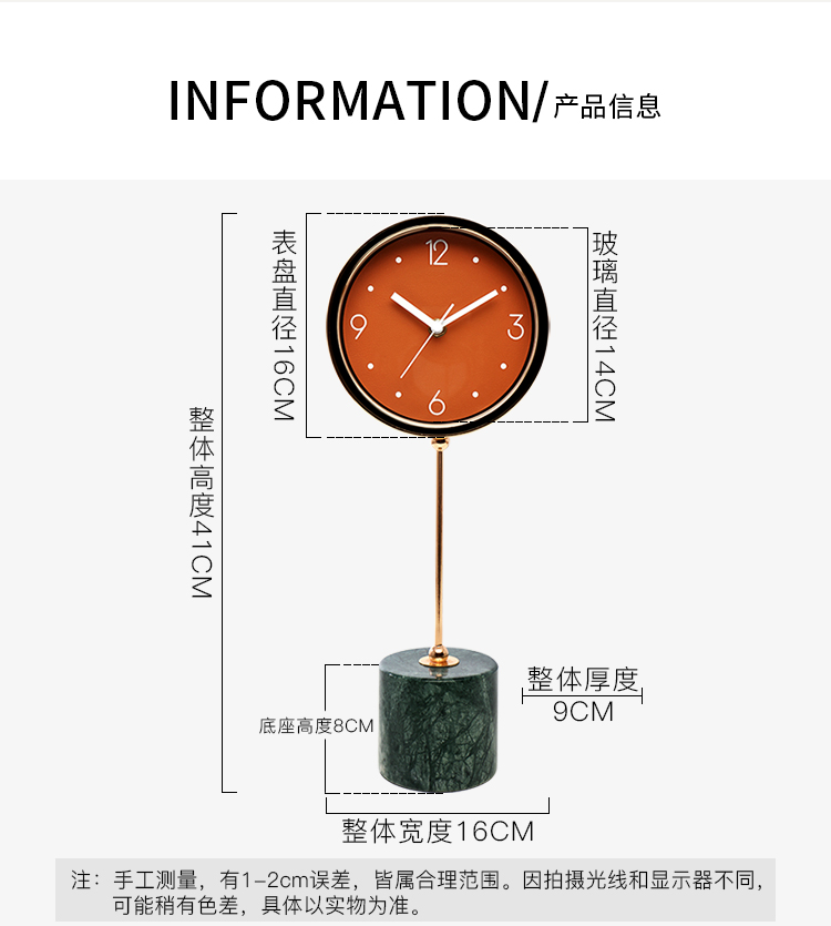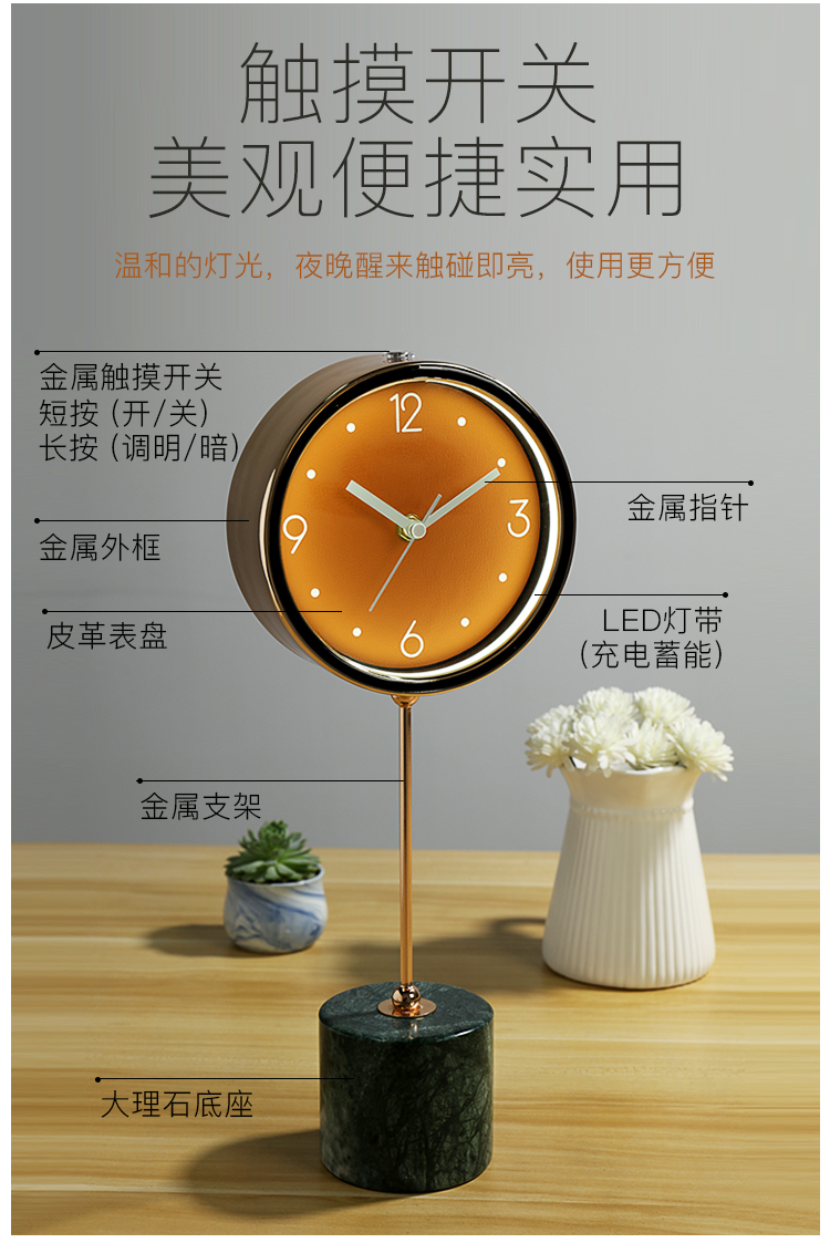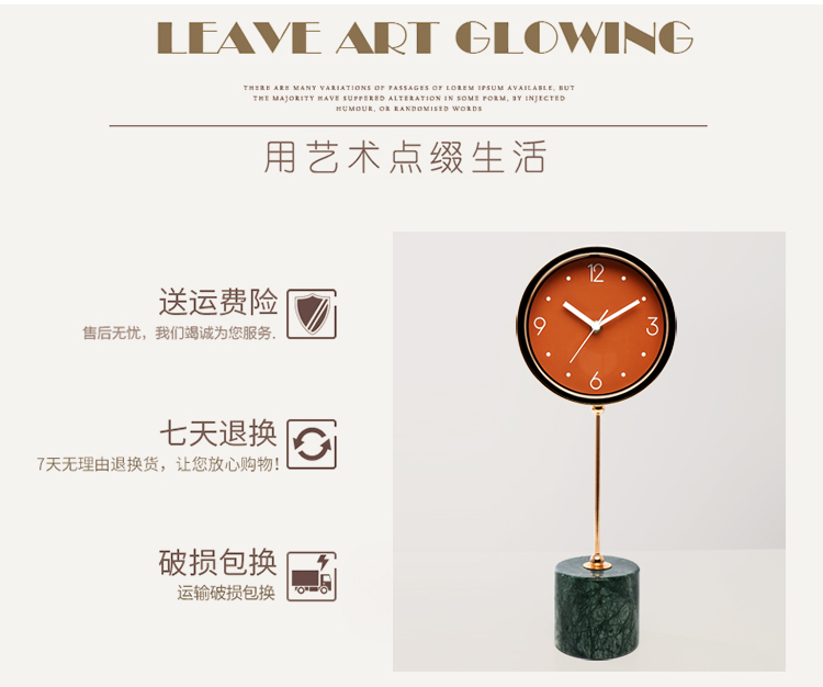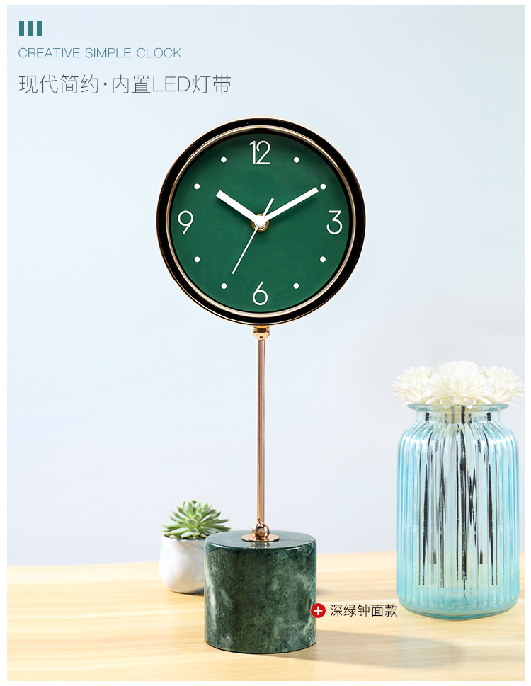 创意时尚大理石夜光装饰座钟客厅轻奢时钟卧室摆件