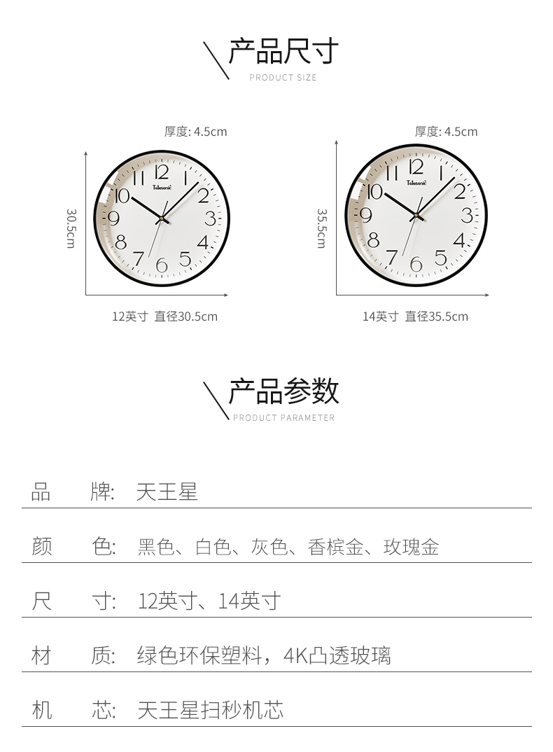 客厅挂钟简约石英钟卧室钟表时尚北欧风时钟居家餐厅墙钟轻奢装饰壁钟