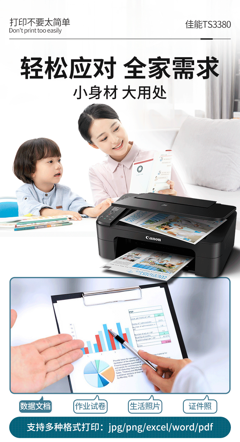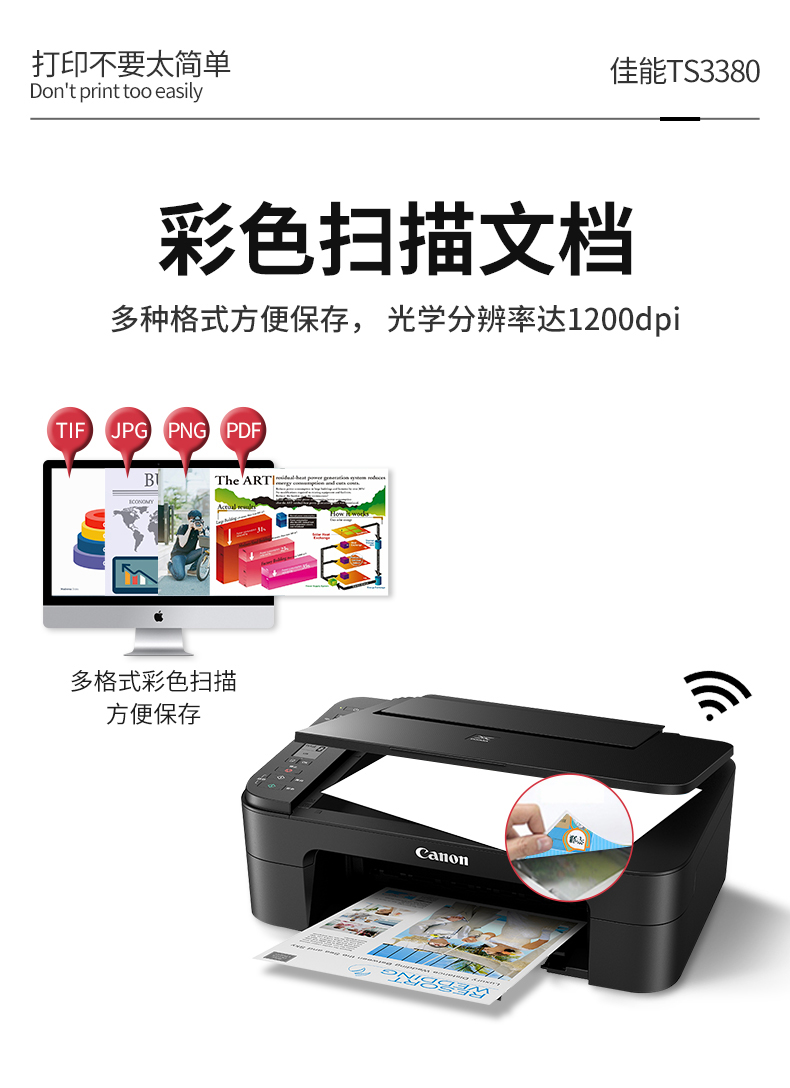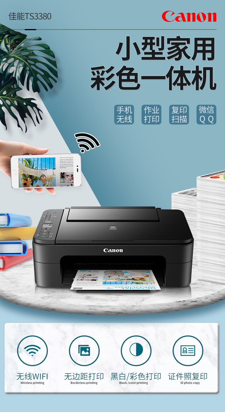 佳能(Canon)TS3380喷墨打印机家用彩色照片打印复印扫描一体机无线办公