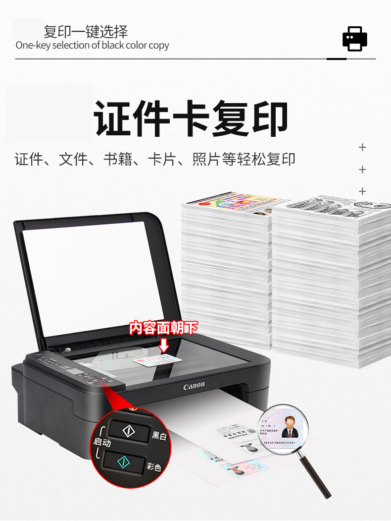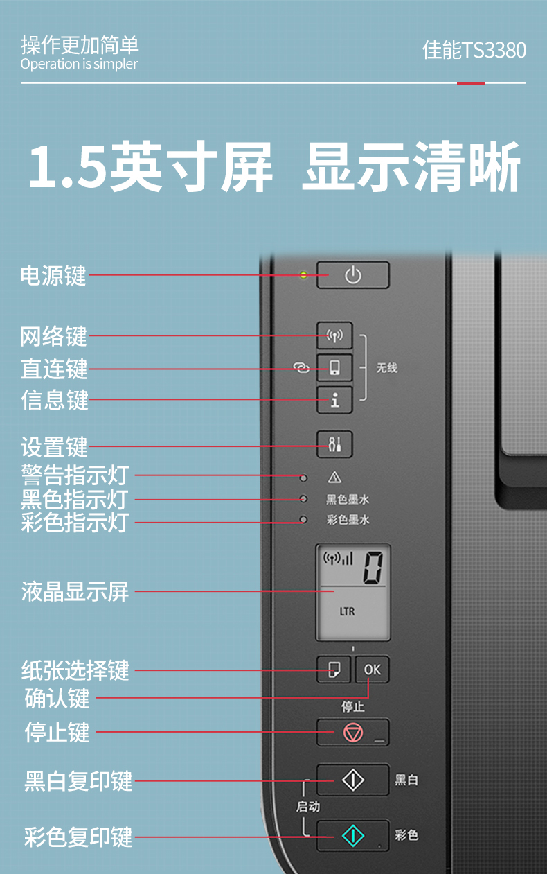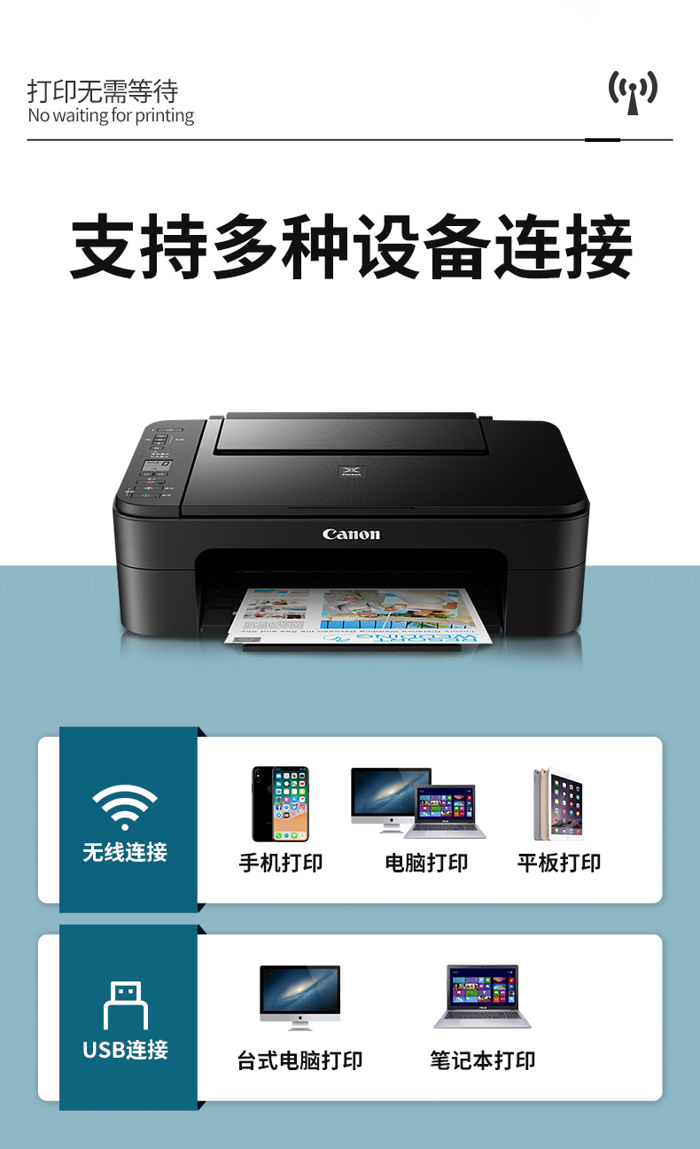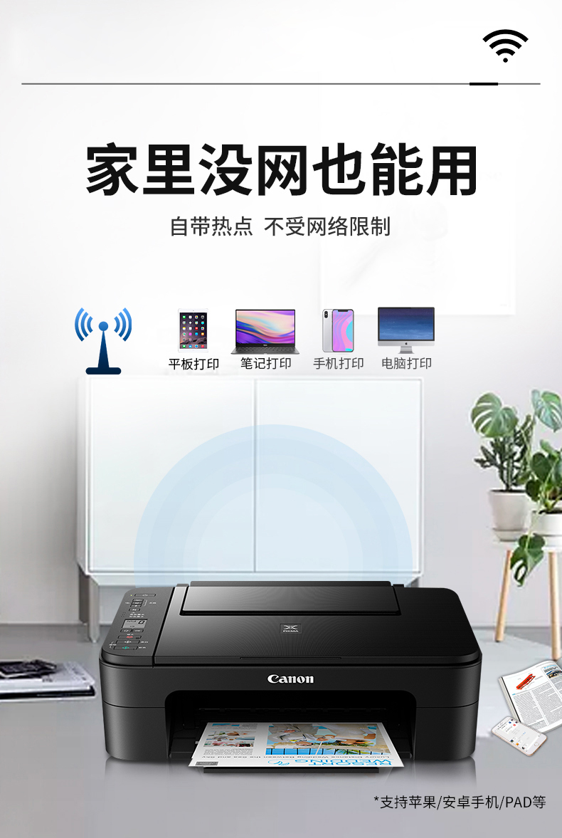 佳能(Canon)TS3380喷墨打印机家用彩色照片打印复印扫描一体机无线办公