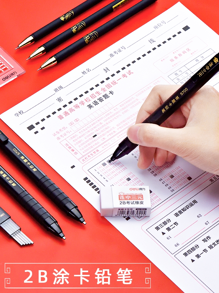 得力(deli)答题卡套装2B笔考试铅笔考试笔自动铅笔电脑涂卡笔学习考研2比铅笔
