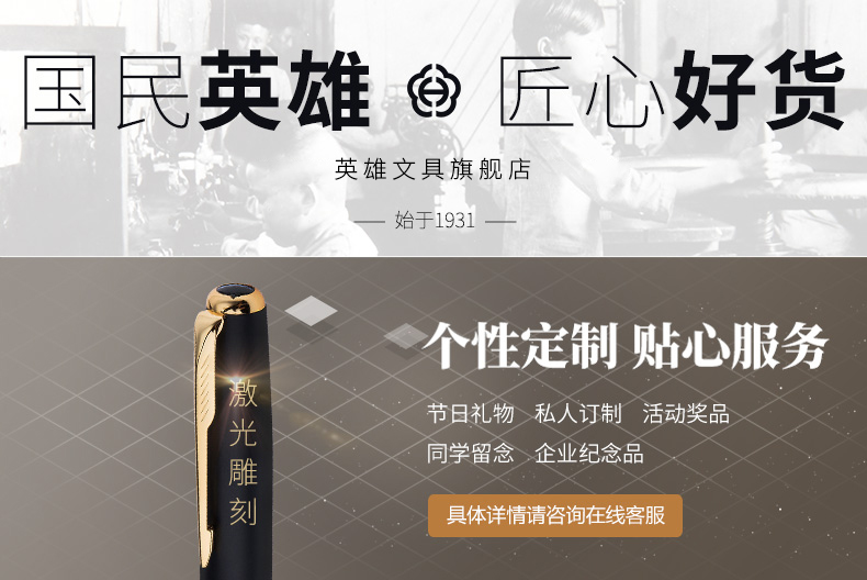 英雄钢笔850学生练字钢笔明尖0.5mm,暗尖0.38mm女生复古男士定制刻字礼物