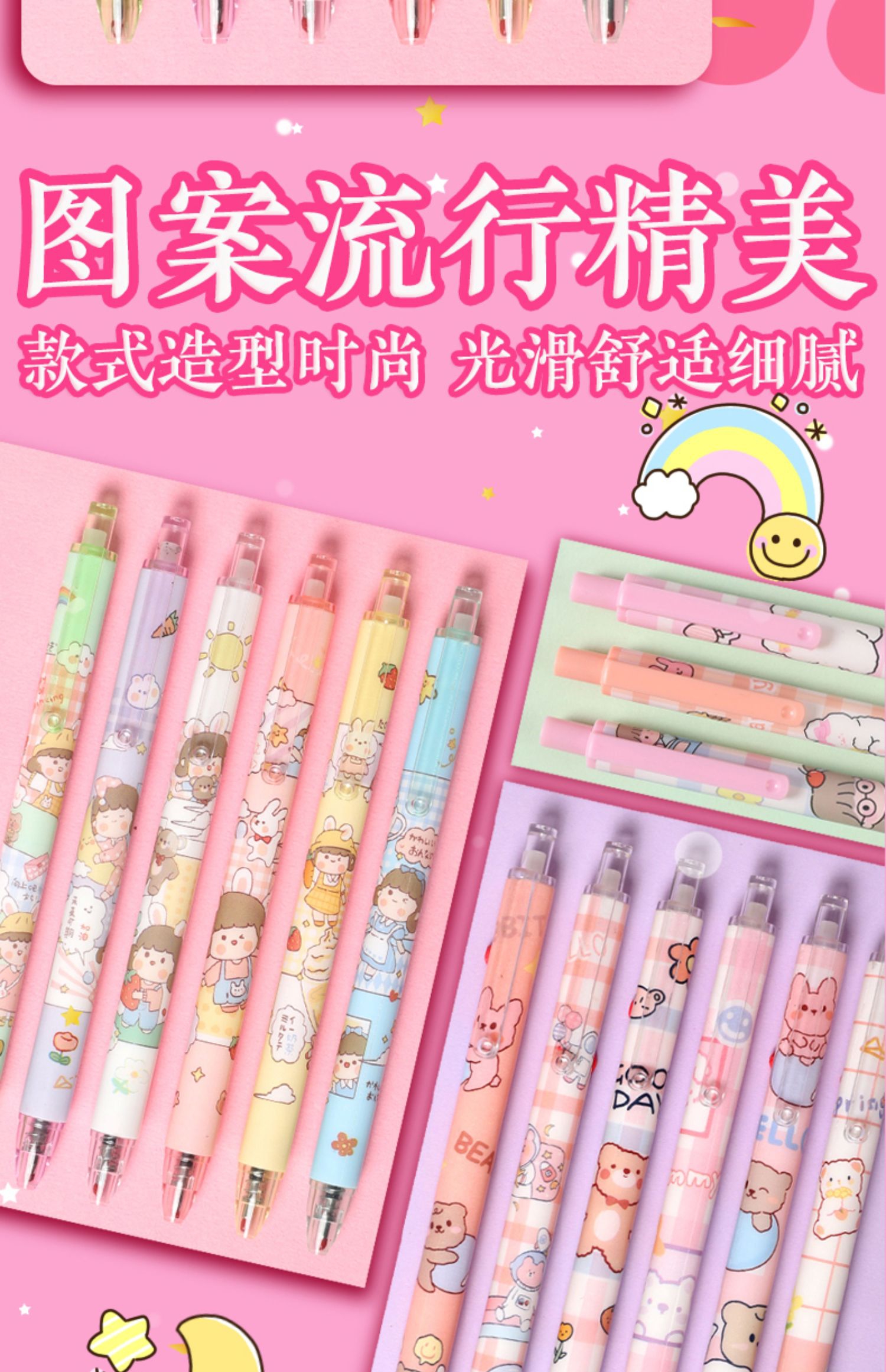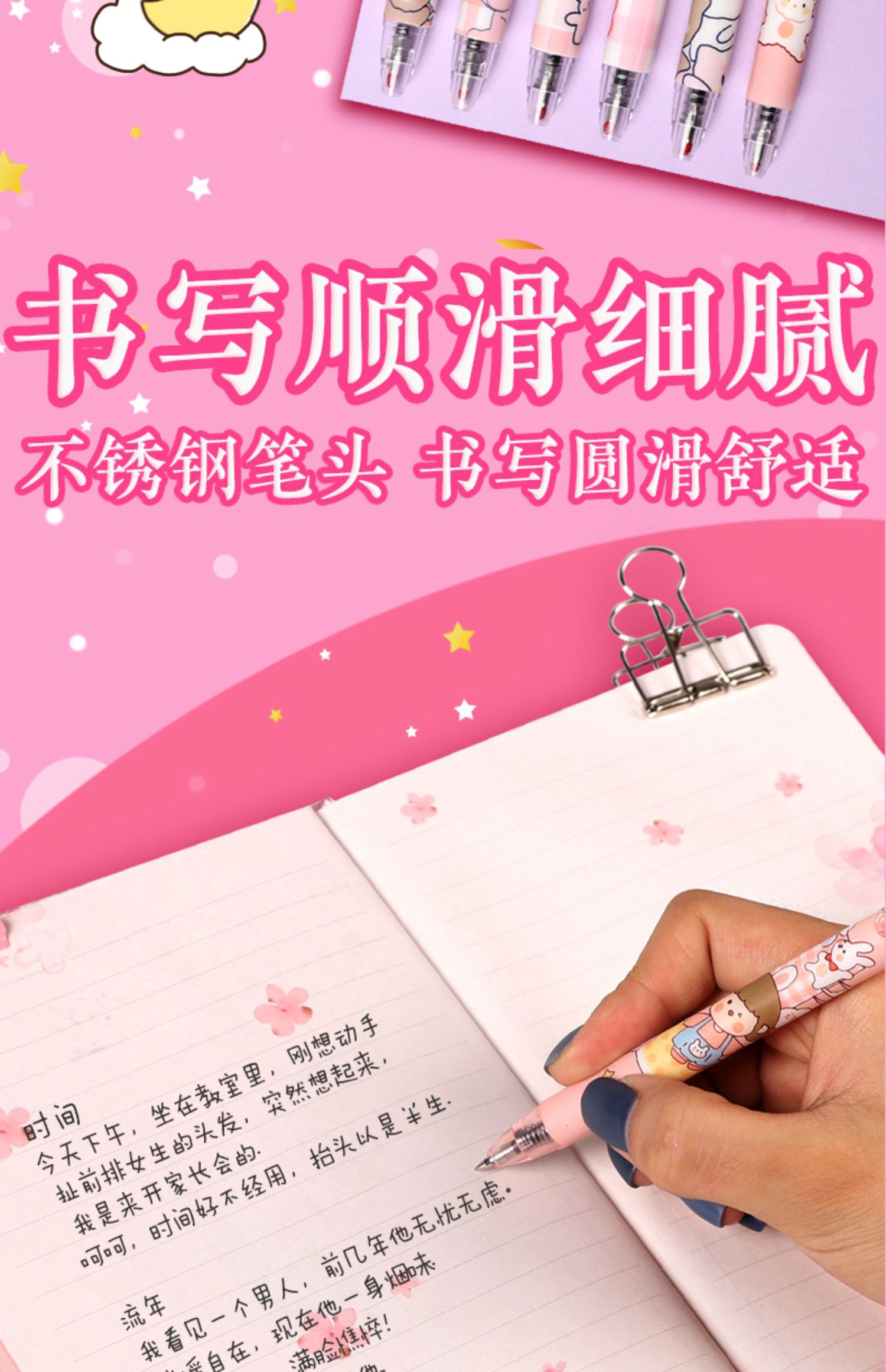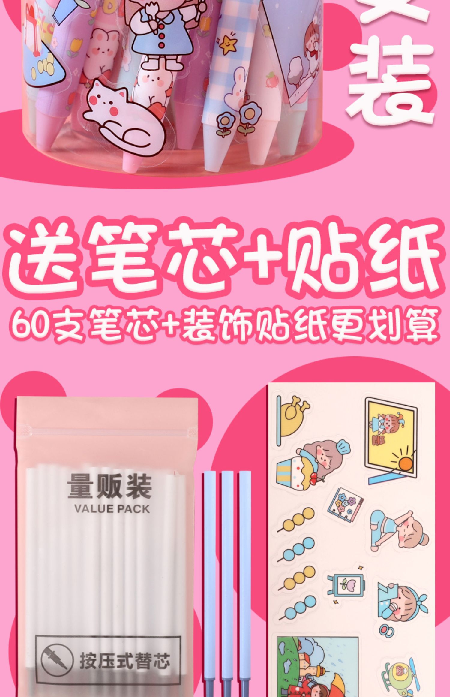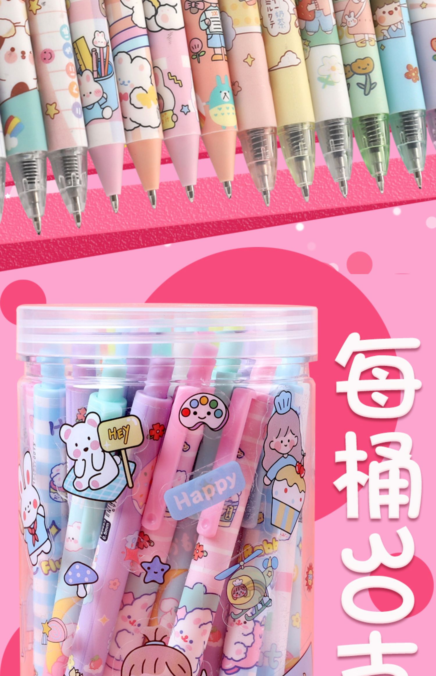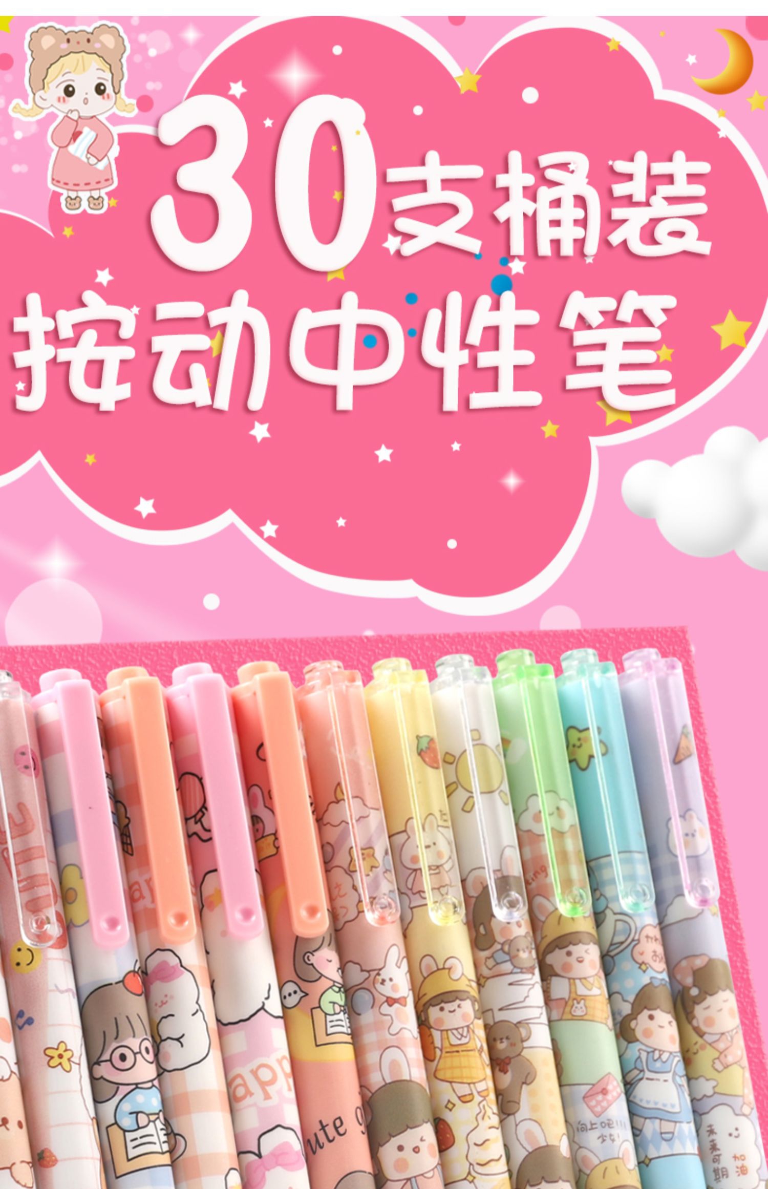 30支桶装按动笔高颜值ins日系可爱中性笔学生用文具黑笔女生水笔