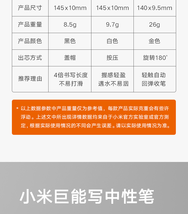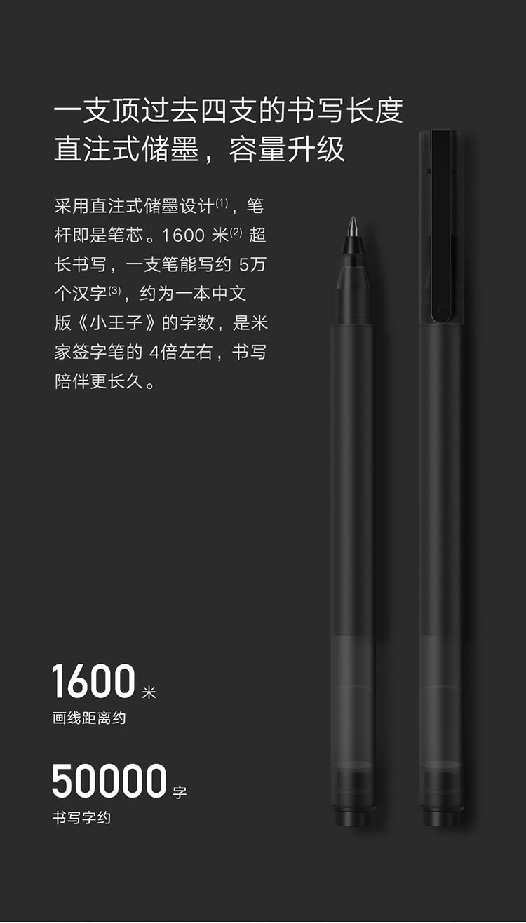 小米巨能写中性笔 10支装黑色 0.5mm 商务办公学生中性笔会议笔 黑色