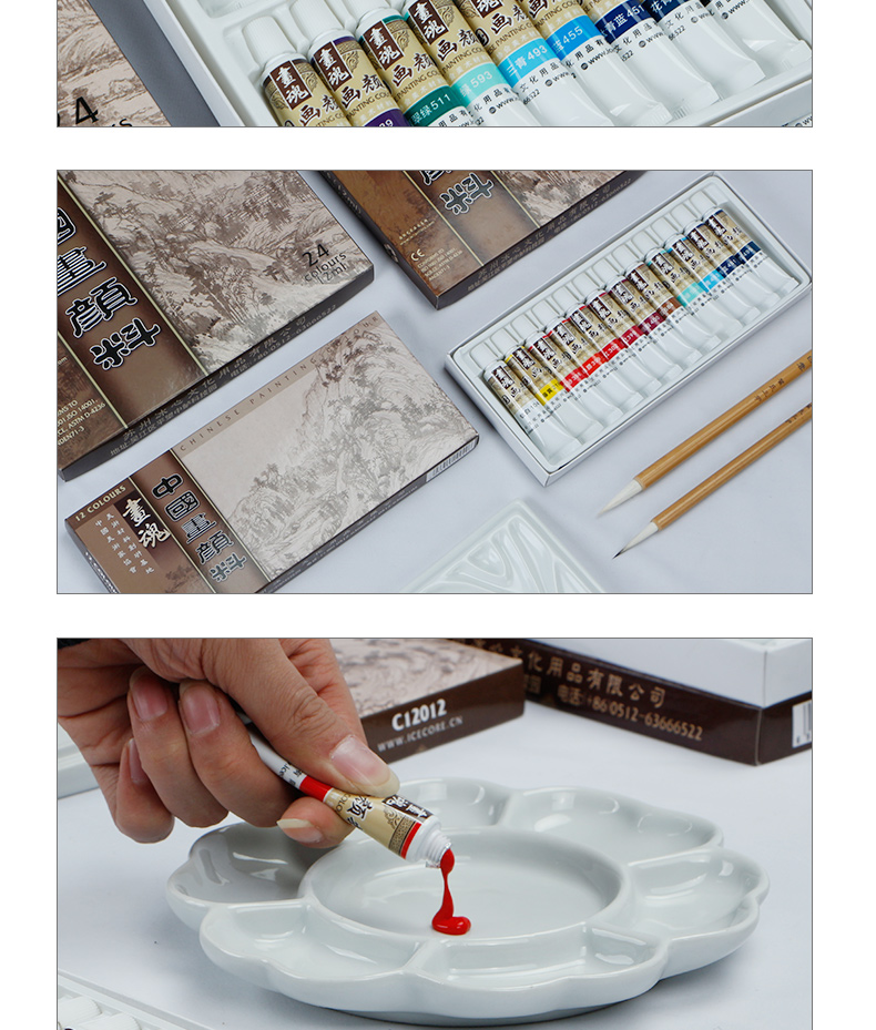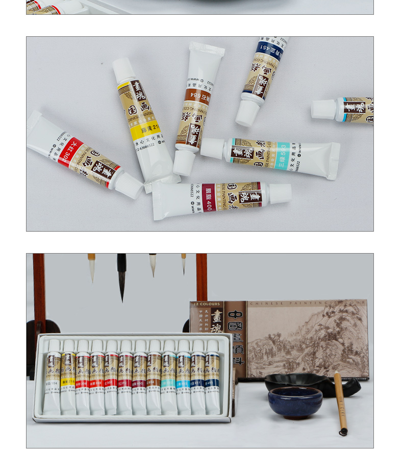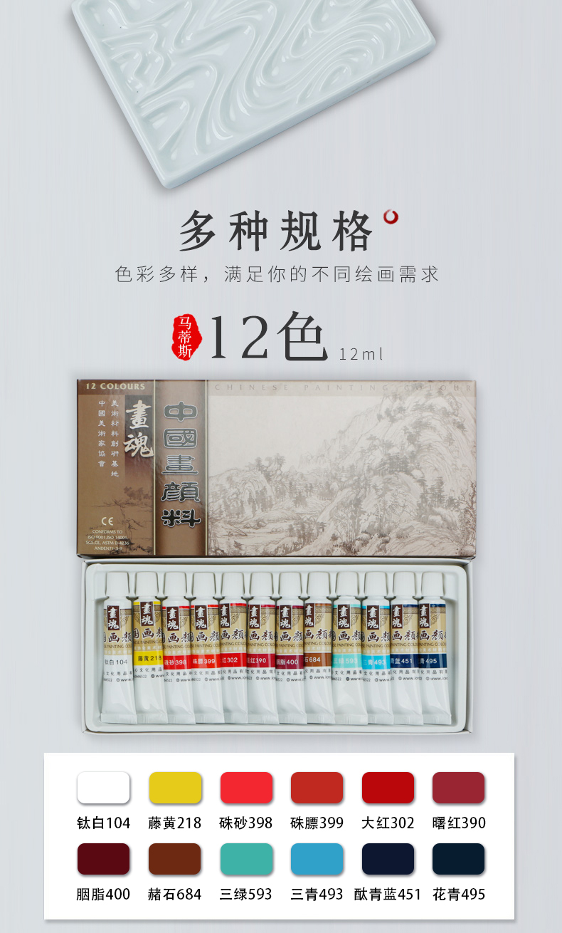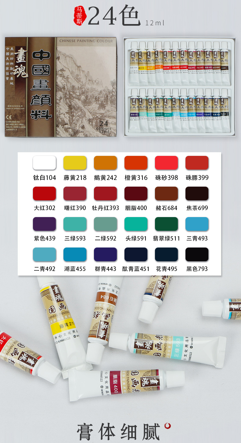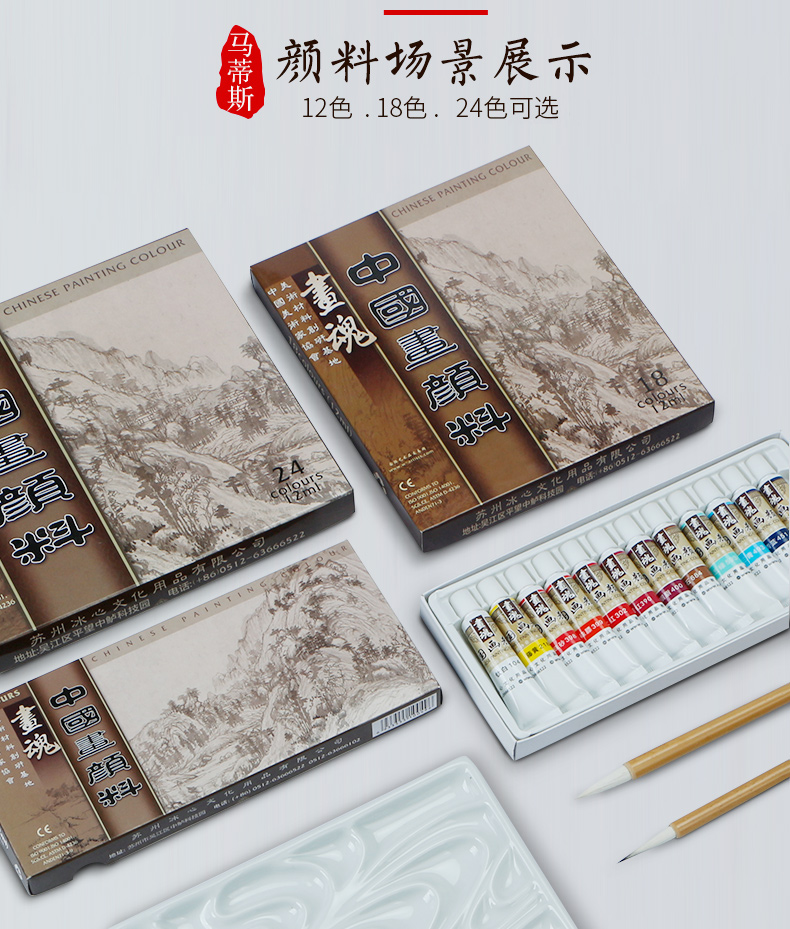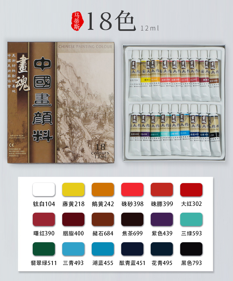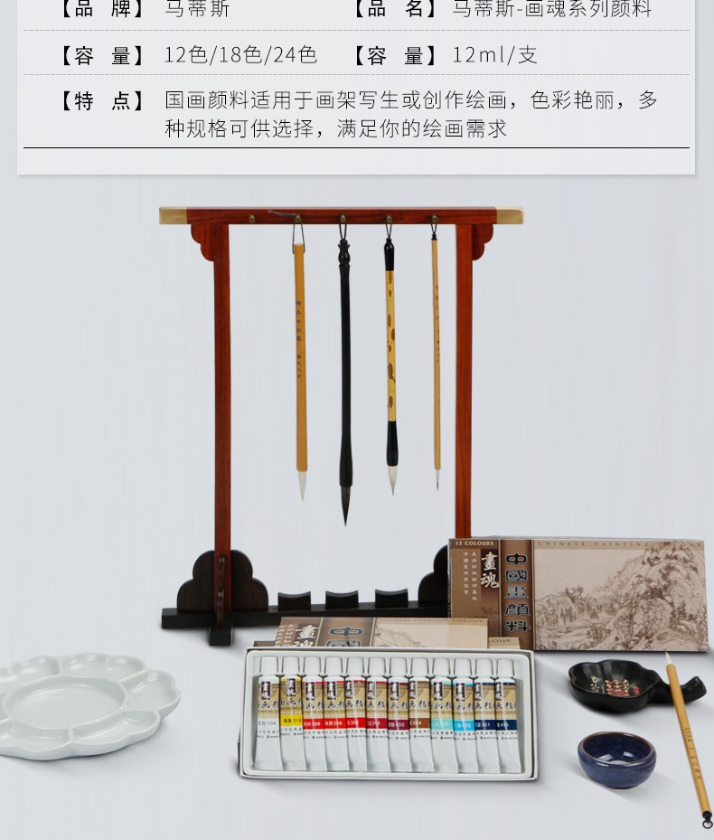 绿彩虹光马蒂斯中国画颜料全套学生初学者入门盒装软管12色套装水粉水彩