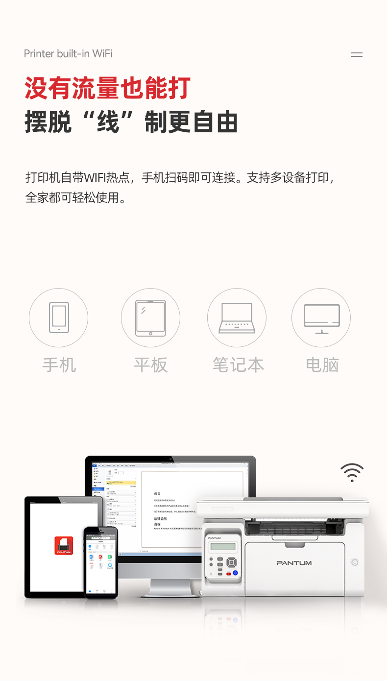 奔图( PANTUM) M6202W 青春版 黑白激光三合一多功能一体机