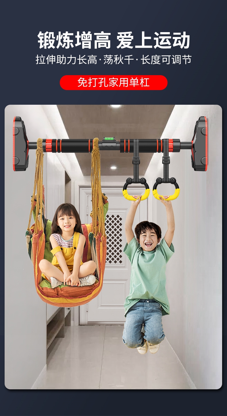 迈高登单杠室内家用引体向上器儿童运动免打孔门上单杆家庭健身器材吊环