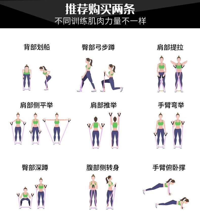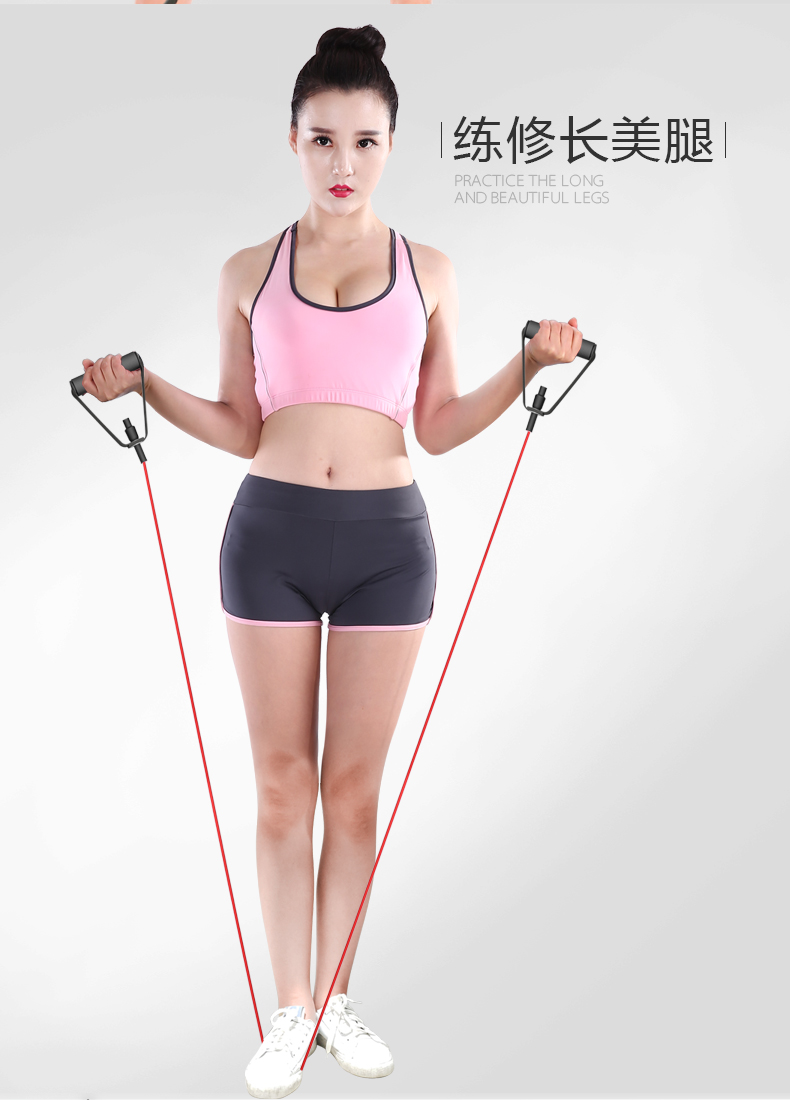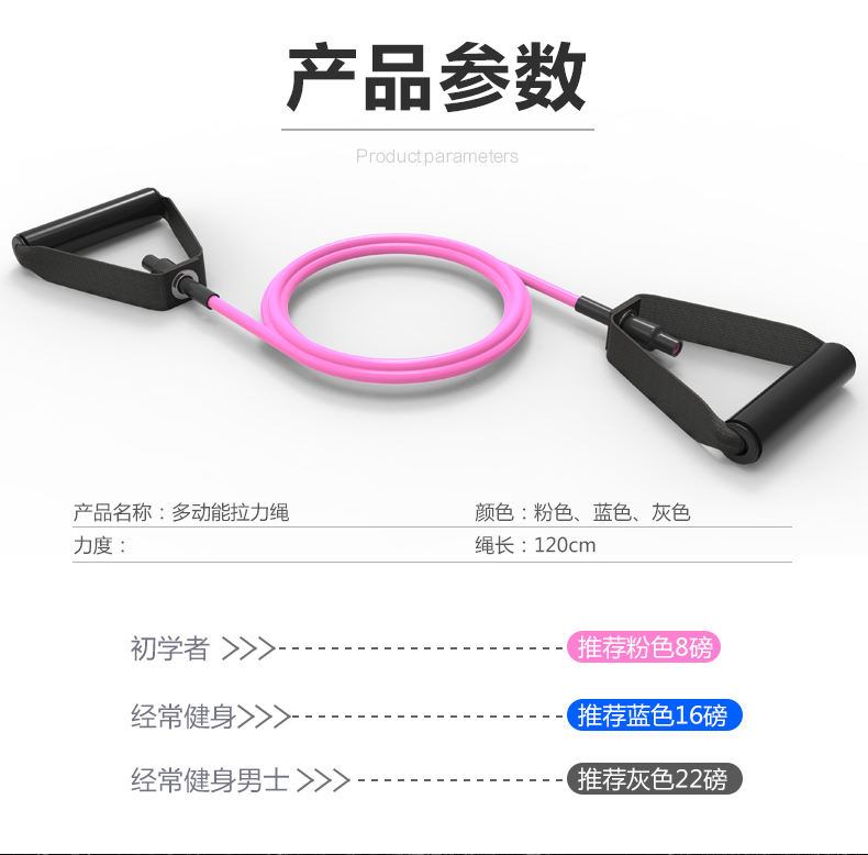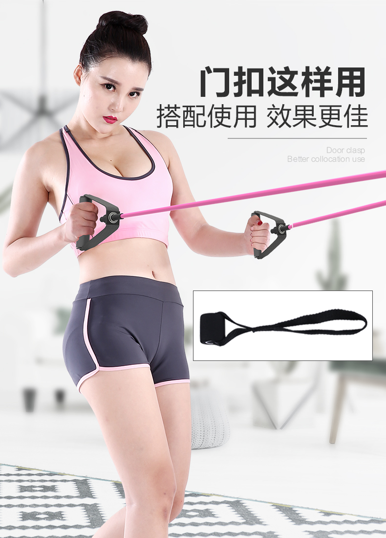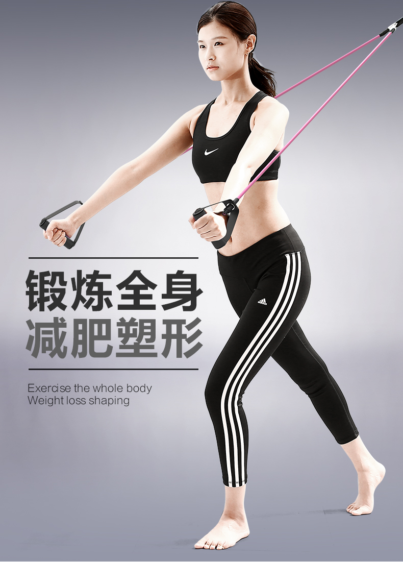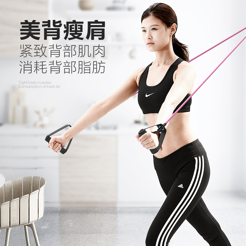 索维尔 拉力绳女士弹力绳家用健身高弹瑜伽拉力带胳膊力量训练多功能拉力器 粉色8磅送门扣
