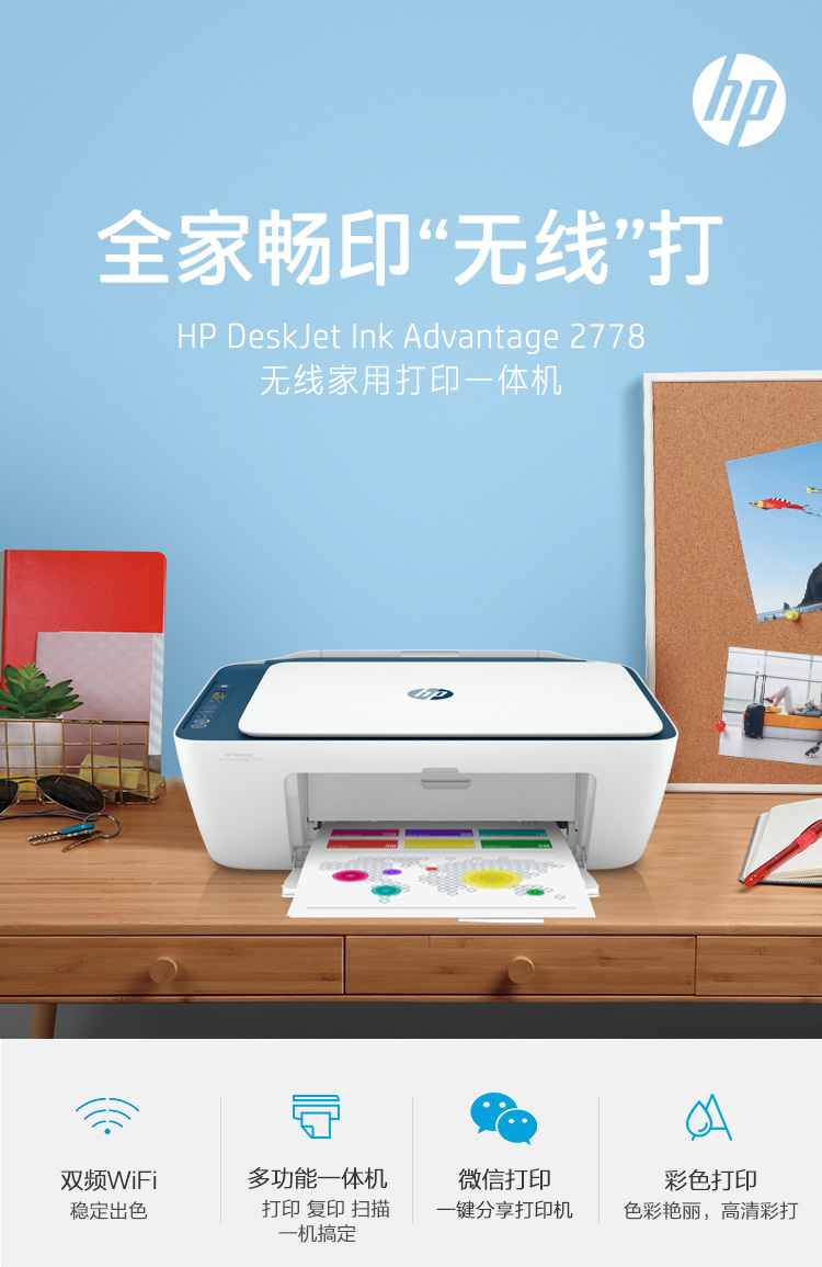 惠普 (HP) DJ 2778喷墨多功能打印一体机 无线 打印 复印 扫描